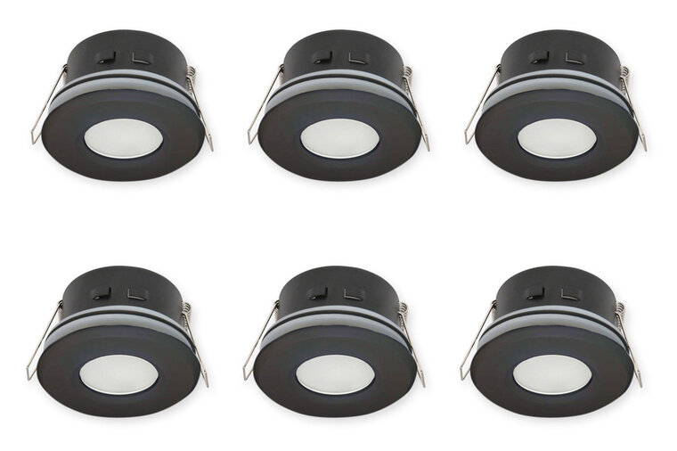 Inbouwspot, Rond, Waterdicht IP54, GU10 Fitting, Mat Zwart, 6-Pack